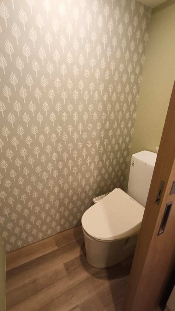 クロス貼り替え+フロアタイル施工により、室内はほぼ新築同様の印象に。